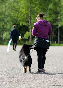 Sunnuntainan suuntasin kulkuni Pelloon, sillä olin lupautunut esittämään ystäväni Suvin bordercollien juhannusnäyttelyssä. Nemo on käyttölinjan koira ja se olikin ilmoitettu käyttöluokkaan tavoitteena saada sille arvosteluksi HYVÄ. Suvin koko perhe lähti mukaan ja meillä olikin oikein mukava reissu yhdessä. Paikalla olimme hyvissä ajoin ehdin hieman treenata Nemoa ennen kehää. Sovittiin Suvin kanssa että mamma saa asettua strategistisesti seisomaan niin että Nemo näkee hänet koko ajan edestä päin. Nemo esiintyi varmoin ottein, juoksi oikein kauniisti ja seisoi ilman asettelua, kiitos Suvin :) Ja uskomatonta mutta totta, arvosteluksi saimme ERITTÄIN HYVÄN! Vautsi, hieno Nemo!! Mahtava reissu takana, ja olin todella tyytyväinen päivään.